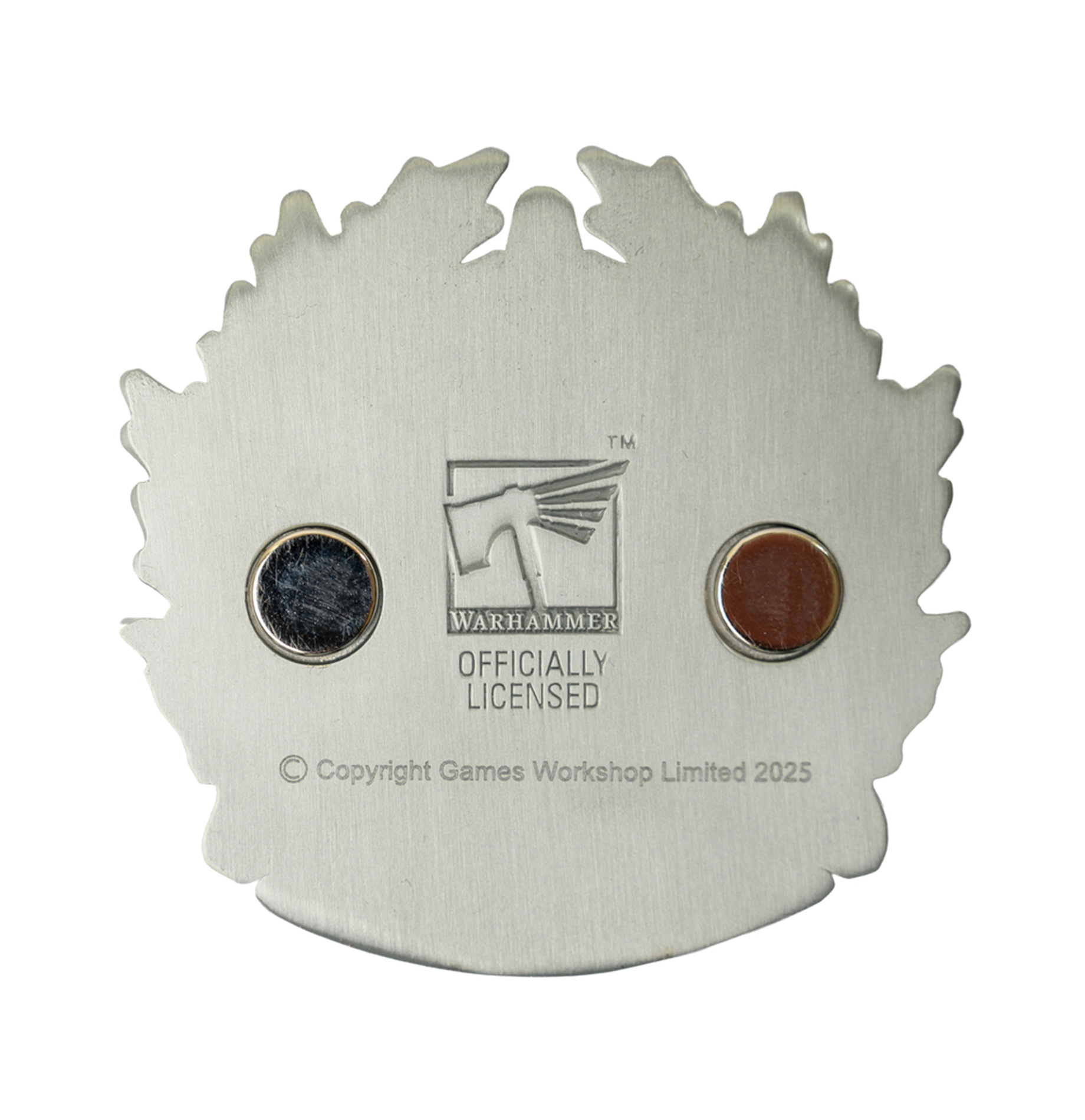 This metal full-colour magnet is a festive holiday twist on an iconic symbol of Sigmar – the inscrutable helmet of a Stormcast Eternal. In this case, it happens to be framed by festive holly in the shape of a laurel wreath. It’s the perfect blend of Warhammer and the holidays – slap it on your fridge to spice up your decorations.