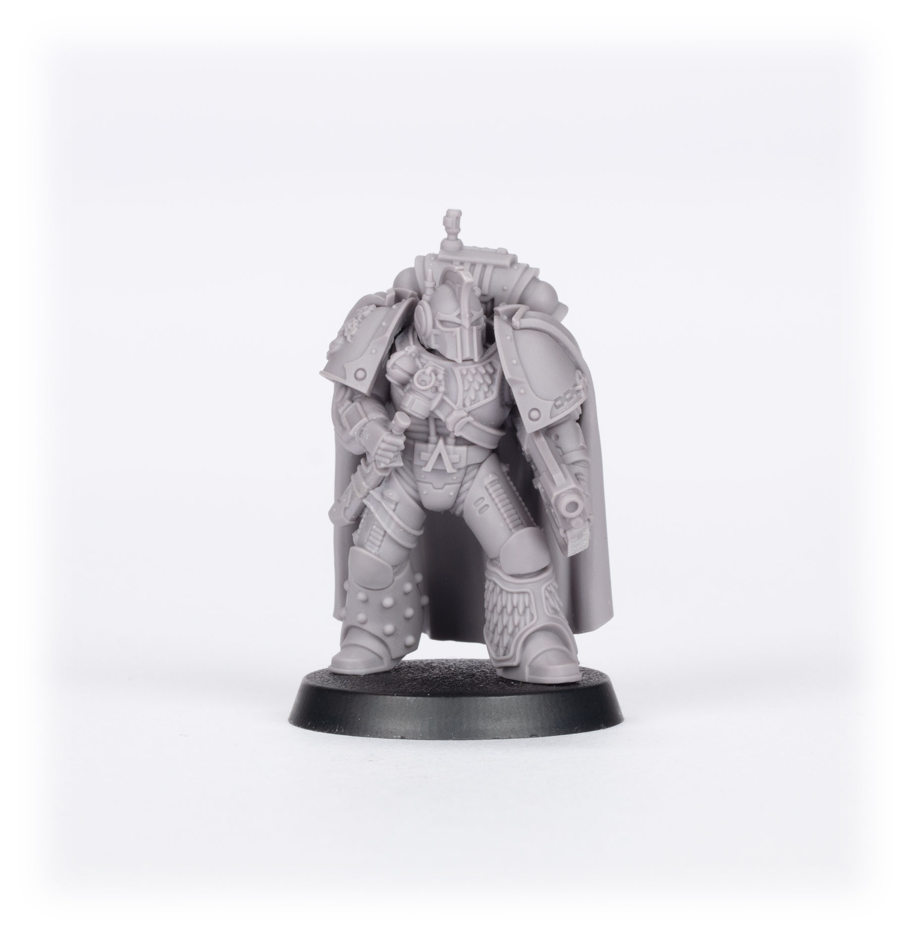 This multipart resin kit builds one Saboteur Consul, a special ops commander for the Alpha Legion. He wields a vicious
