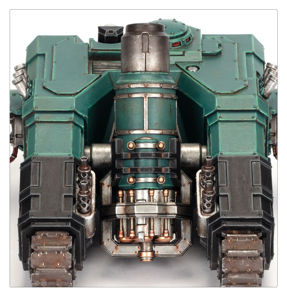 The Legion Arquitor is a heavy artillery platform designed to operate at the forefront of a Legiones Astartes advance. Equipped with a reinforced chassis and brutal short range firepower, it is called upon to break the most stubborn of fortifications or to annihilate massed enemy infantry and armour. The morbus bombard launches shells loaded with deadly phosphex, a toxic and corrosive incendiary compound that eats through flesh and metal alike, tainting the very ground and air with alchemical fire.