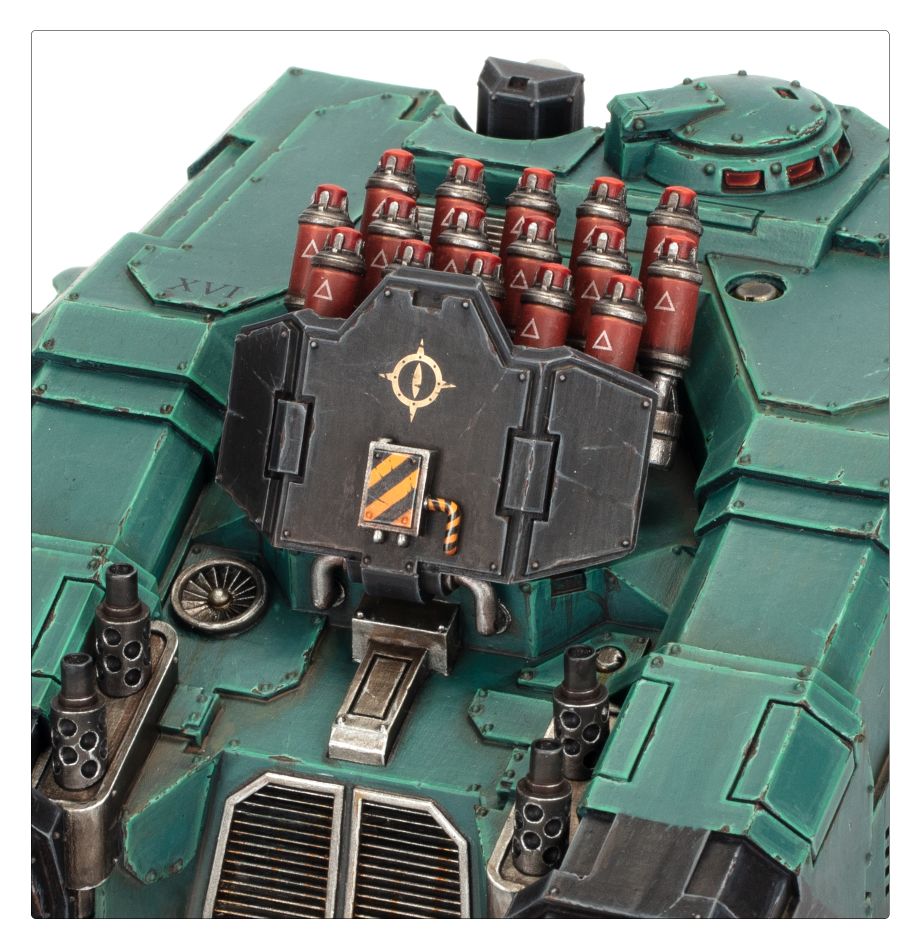 The Legion Arquitor is a heavy artillery platform designed to operate at the forefront of a Legiones Astartes advance. Equipped with a reinforced chassis and brutal short range firepower, it is called upon to break the most stubborn of fortifications or to annihilate massed enemy infantry and armour. The spicula rocket system fires rippling salvos of unguided missiles that crash down on enemy positions, creating massive cumulative blasts that can scatter whole formations.