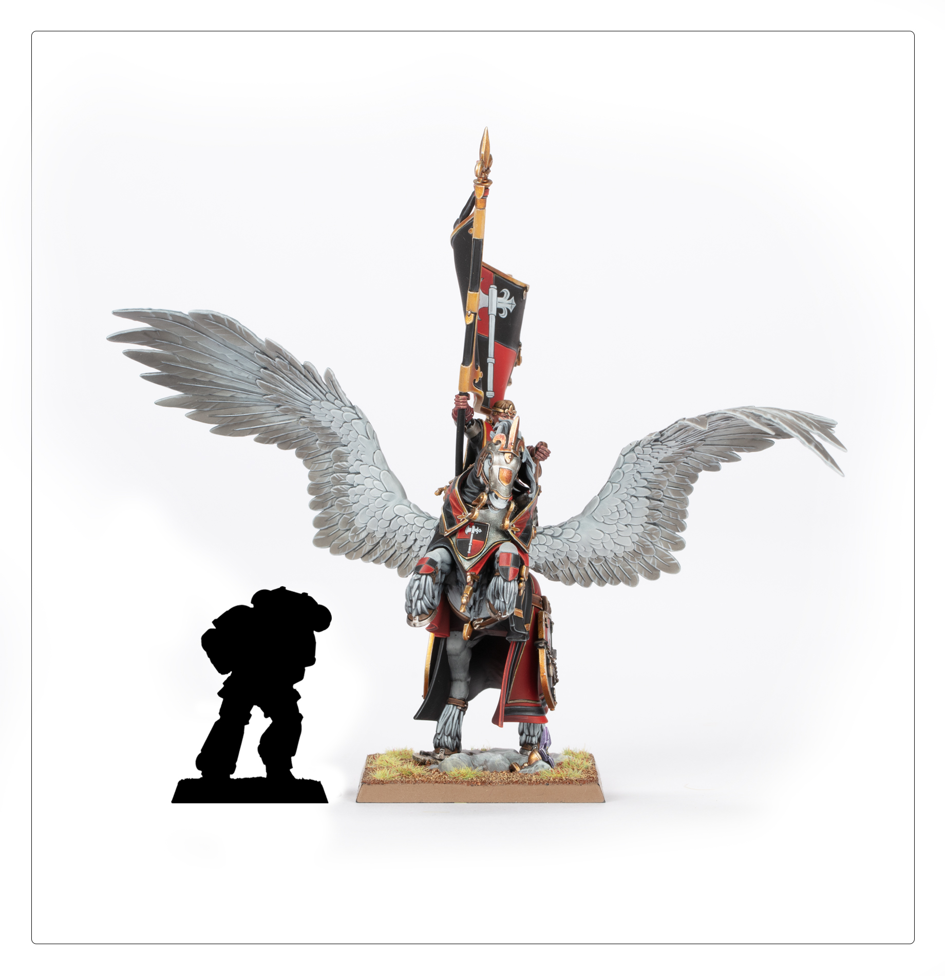 A fully armoured Paladin mounted on a Royal Pegasus is a majestic sight indeed, and often, the honour of carrying the army’s banner falls to one of these knights. Resplendent as they lead the charge, they hold aloft their standard, snapping crisply in the rush of air.