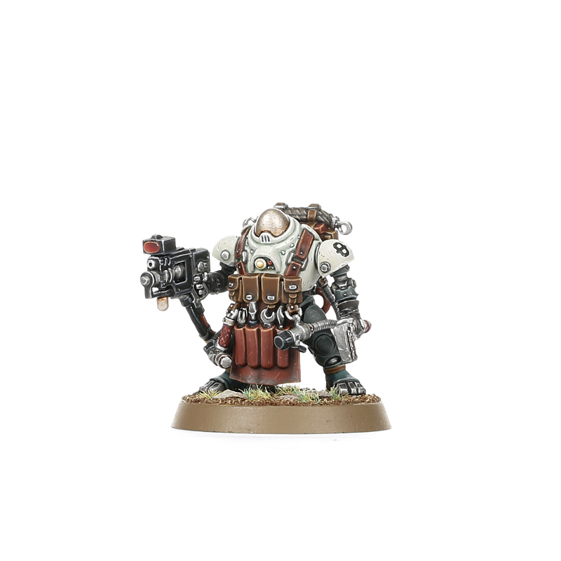 This multipart plastic kit builds one Brôkhyr Iron-master, a high-ranking field engineer with an accompanying retinue. Armed with a graviton rifle and graviton hammer of their own creation, the Iron-master’s