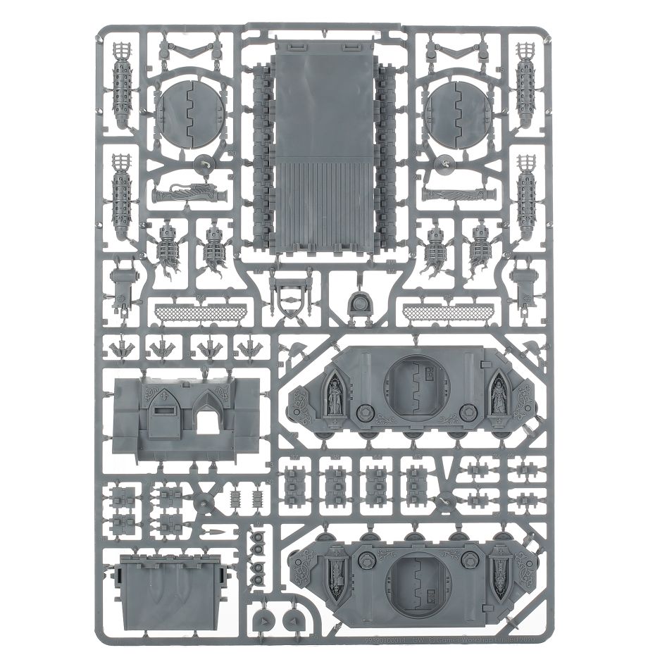 The Castigator is an ancient relic that is covered in ornate gothic designs and decorations such as the classic Adepta Sororitas fleur-de-lys iconography. It can be built with either a Castigator battle cannon or Castigator autocannons as its main weapon, and there are also wargear options, gunner options, and the braziers