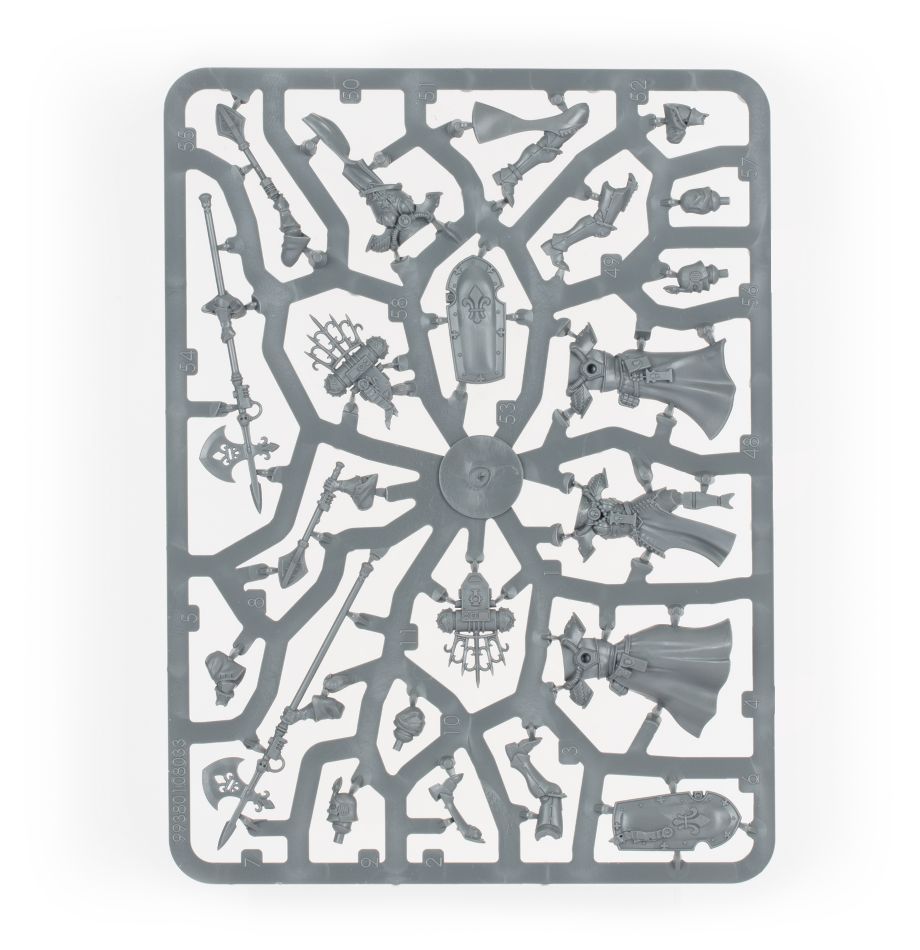 Equipped with their distinct Sacresant shields and clad in the Adepta Sororitas’ signature power armour, these close-combat specialists are a durable force on the battlefield, capable of withstanding