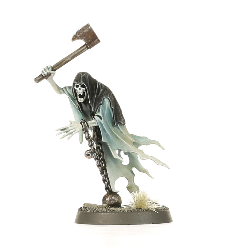 The most numerous of all the spirits that join Nighthaunt processions are the Chainrasp Hordes. These gheists are created from the spirits of the most vicious and irredeemable criminals to have lived in the Mortal Realms. They are lesser spirits, held together in the afterlife by nothing other than their own never-ending spite and all-consuming madness, a negative energy which saps the will of their enemies. Chainrasps may have thought death to be an escape from terrible imprisonment but, in truth, it was merely the beginning.