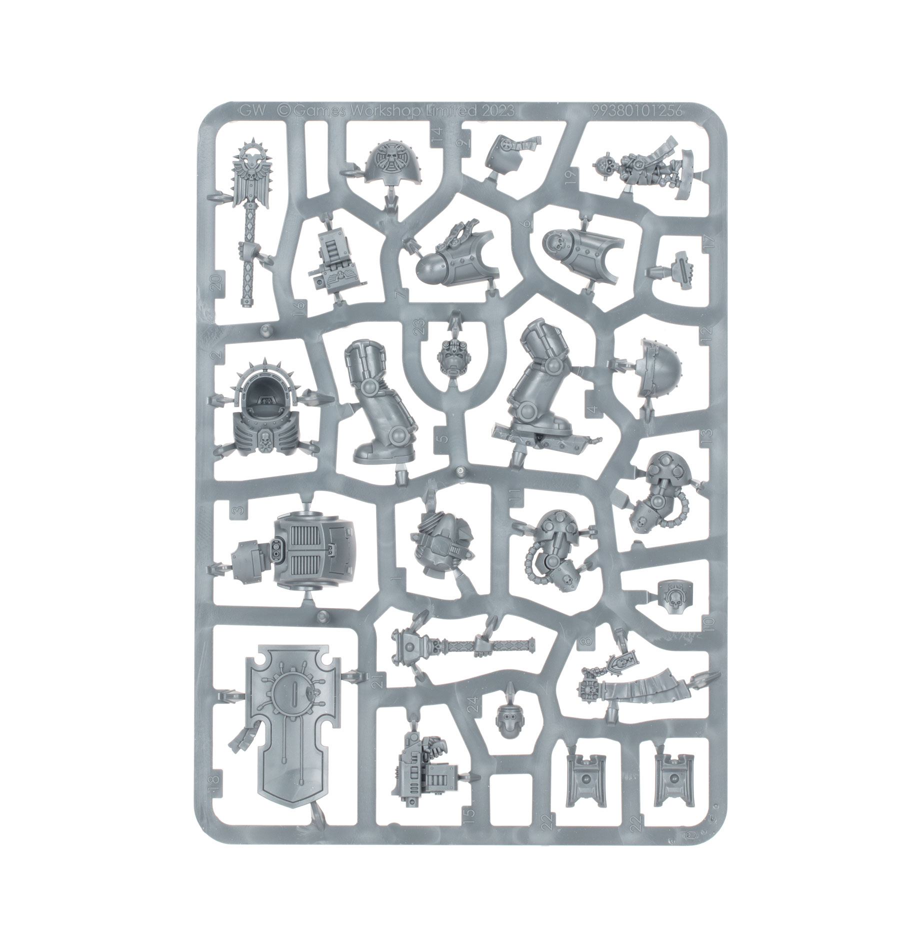 This multipart plastic kit builds one Space Marine Chaplain clad in durable Terminator armour. This inspiring orator stomps into battle, crushing skulls with a crozius arcanum – his deadly staff of office. In his other hand, he carries either a