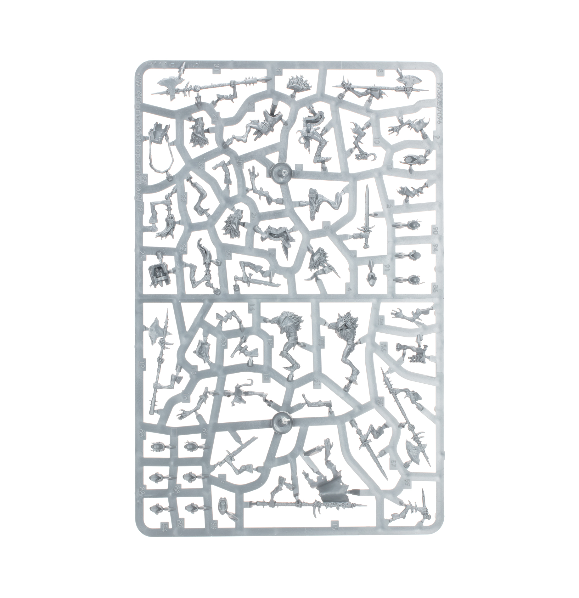 This multipart plastic kit builds 10 Cryptguard, devoted ghoul retainers for the nobility of the Flesh-eater Courts. The Cryptguard carry a variety of cursed weapons into battle – you can outfit each ghoul with a