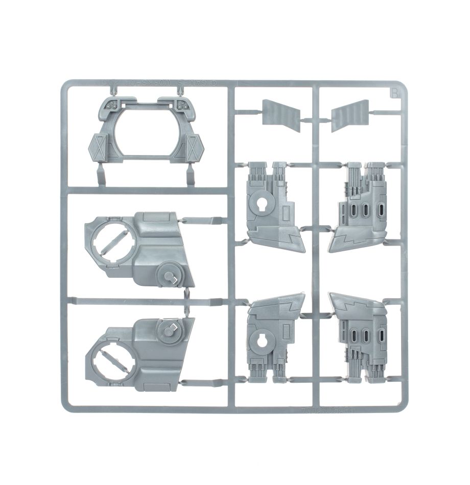 This multipart plastic kit builds a Devilfish – a flying transport vehicle employed by the T’au Empire. This sleek skimmer is equipped with a nose-mounted accelerator burst cannon, and features a pair of