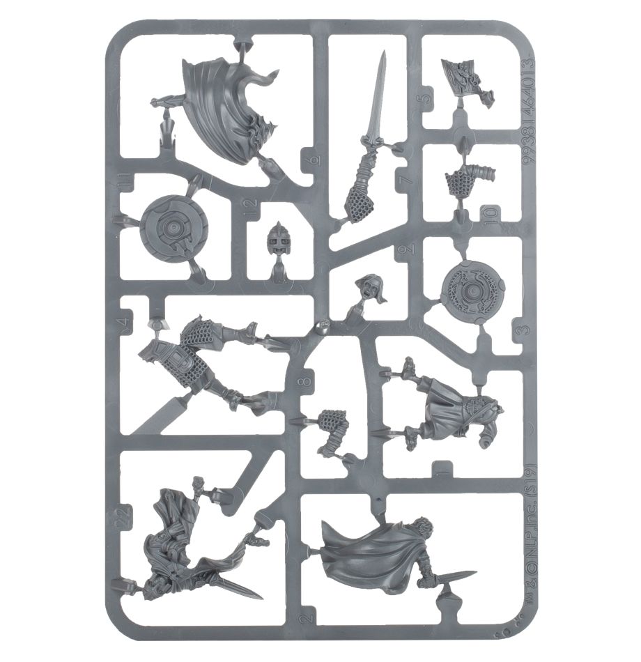This multipart plastic kit contains the components necessary to assemble Éowyn and Merry, both on foot and mounted on horseback. When mounted, you have the option to remove Merry, leaving just Éowyn. On foot, Éowyn