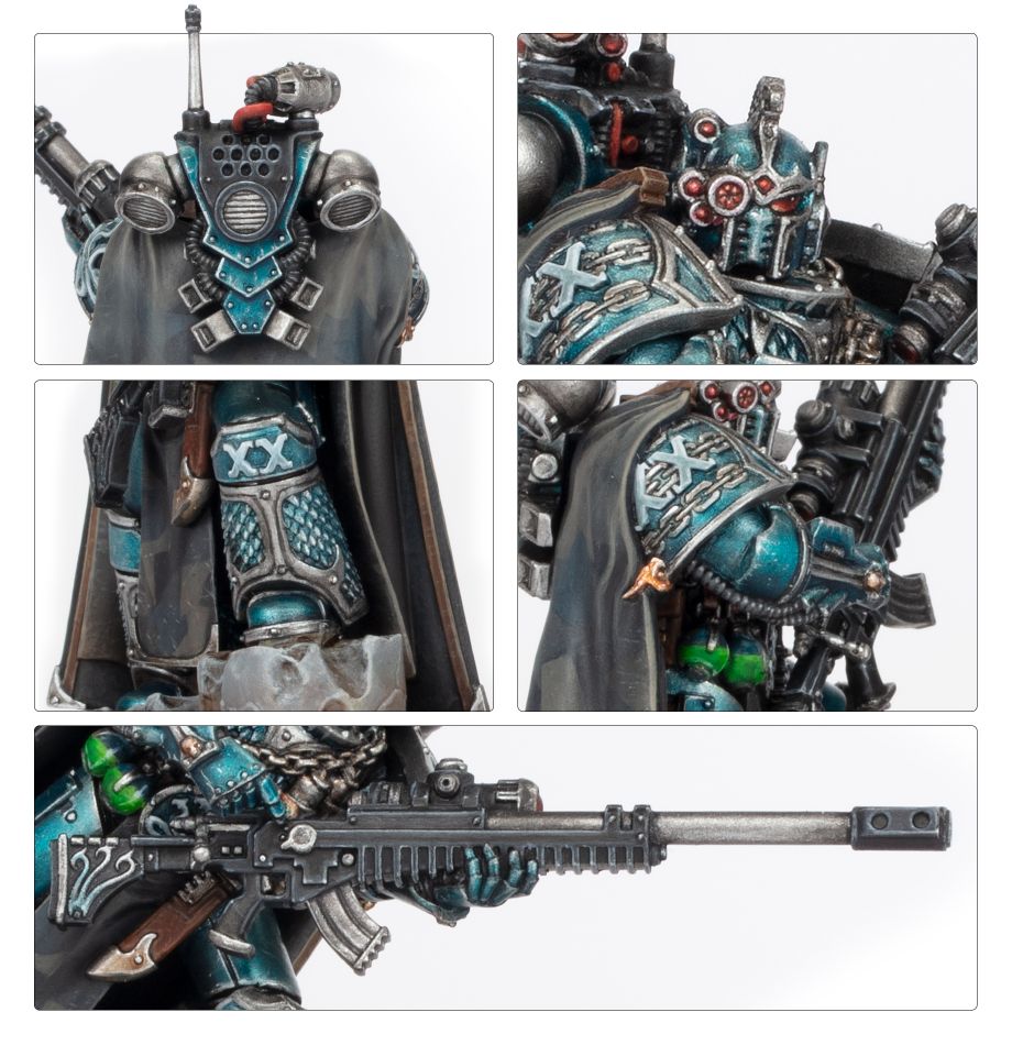 None can say whether Exodus is a single individual, or one of several supremely skilled assassins operating at the behest of the uppermost echelons of the Alpha Legion. Whatever the truth, the agent – or agents – known as Exodus must rank amongst the most dangerous killers outside of the Officio Assassinorum. Combining the physiology of a Space Marine with the fieldcraft and patience of an assassin, Exodus is said to rival even the marksmen of Clade Vindicare in his ability to insinuate himself into position and deliver a pivotal killing shot.