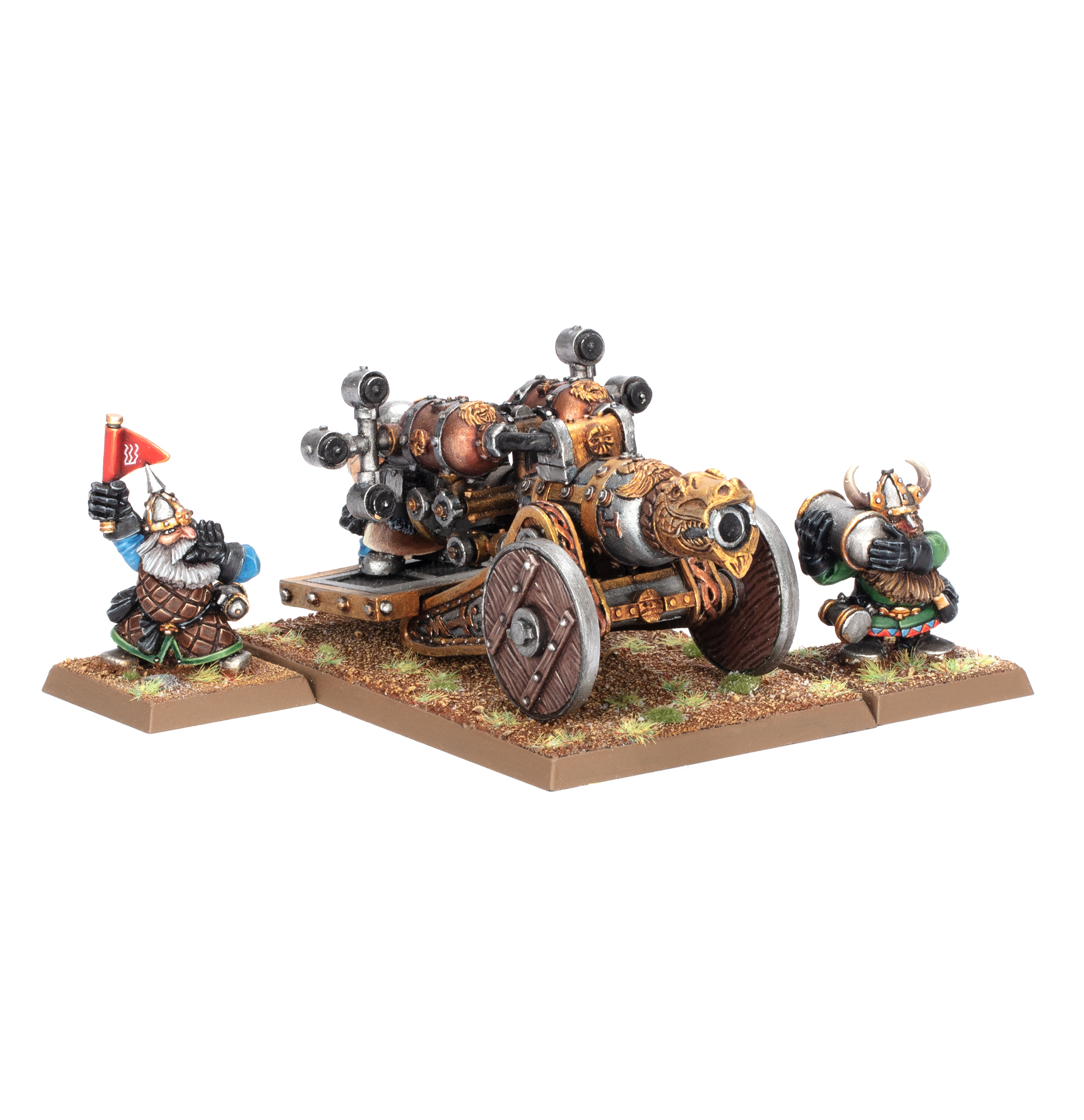 This multipart metal kit builds the nightmarish Flame Cannon, as well as a crew of three Dwarfs. This weapon is useful as a shock weapon, as well as being ideal for taking down hordes of enemy infantry. Your opponent will steer clear of it, allowing you to direct the flow of the battle as you deny them swathes of the battlefield. It’s also an