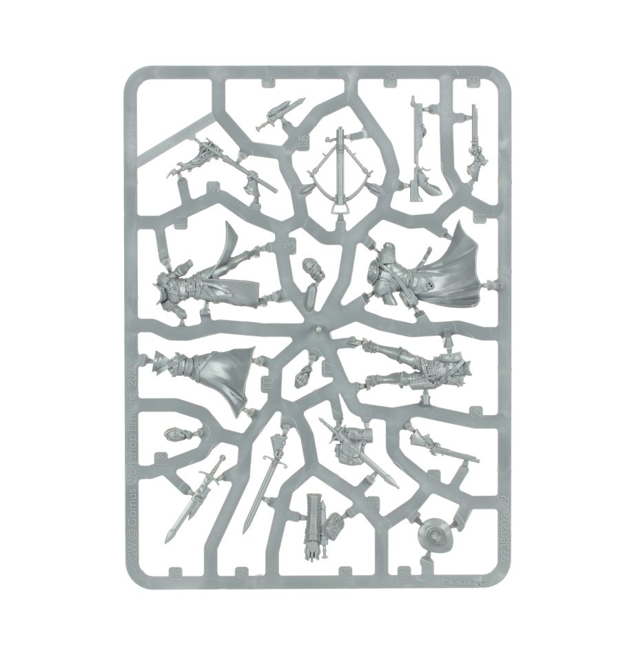 Deep in the city of Excelsis lie several wards sealed off on pain of death, areas forever blighted by Tzeentchian sorceries left in the wake of the traitor Ortam Vermyre’s uprising. To deal with the magical creatures and haphazard spells that found their way out of these quarantined zones, the Order of Azyr was formed, with veteran witch hunter Galen ven Denst at its head. Together with his daughter Doralia, a peerless markswoman who’s perfected the art of banishing rogue daemons with her rune-engraved crossbow bolts, he dedicates his life to snuffing out all manner of arcane threats to