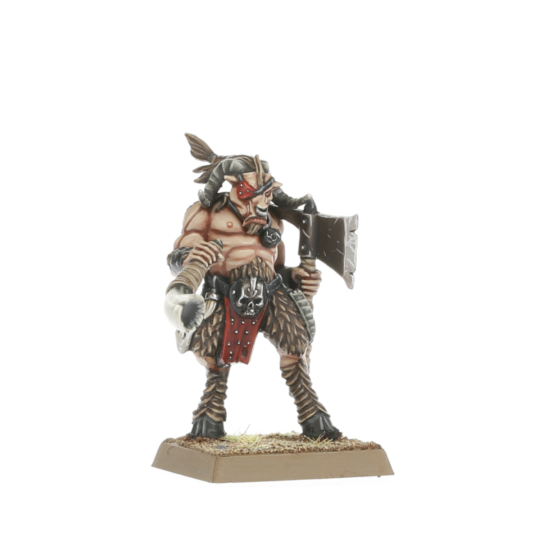 Gors form the great mass of the Warherds. With the head and legs of a goat, the upper torso of a Man, the savage fangs of wolves – with which to tear great chunks of flesh from their foes – and muscular, robust bodies, they are well-suited to acting out their primal urges. One thing all true Beastmen have in common is their horns, without which they cannot be considered real Gors.