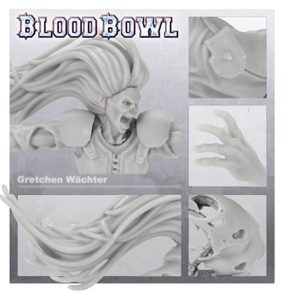 There are some poor souls who find themselves wedded to a Blood Bowl fan of such boundless enthusiasm that it encroaches into every aspect of daily life. Important dates and anniversaries are ignored or forgotten, and family functions are avoided. Before long, the unfortunate lover begins to resent the beautiful game. In time, a strong hatred of Nuffle, and all his wonders, is fostered and domestic bliss becomes a thing of the past! Such was the case with Gretchen Wächter, whose husband was utterly obsessed with Blood Bowl when they were still alive. The Necromancer and aspiring coach Dirk