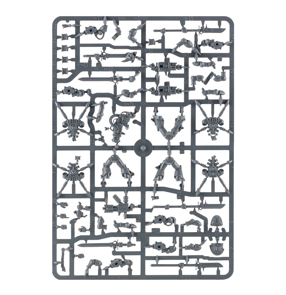 This kit builds ten Purgators armed with Nemesis force swords and storm bolters, one of which can be assembled as the unit leader, a Purgator Justicar. Any model can replace their Nemesis force sword with a variety of arcane weapons – the kit includes six