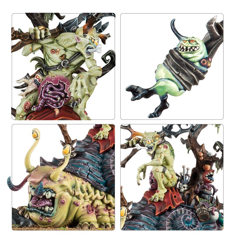 Gnarled and leathery, like a rotted apple left too long in the sun, Horticulous Slimux is a pragmatic and humourless being with a no-nonsense approach to war and gardening alike. Sat astride his lumbering molluscoid steed, Mulch, the Plague God’s head gardener tills the foetid soil of the material world, casting an experienced eye over the festering flora all around him as he goads packs of thrashing plague beasts into battle.
