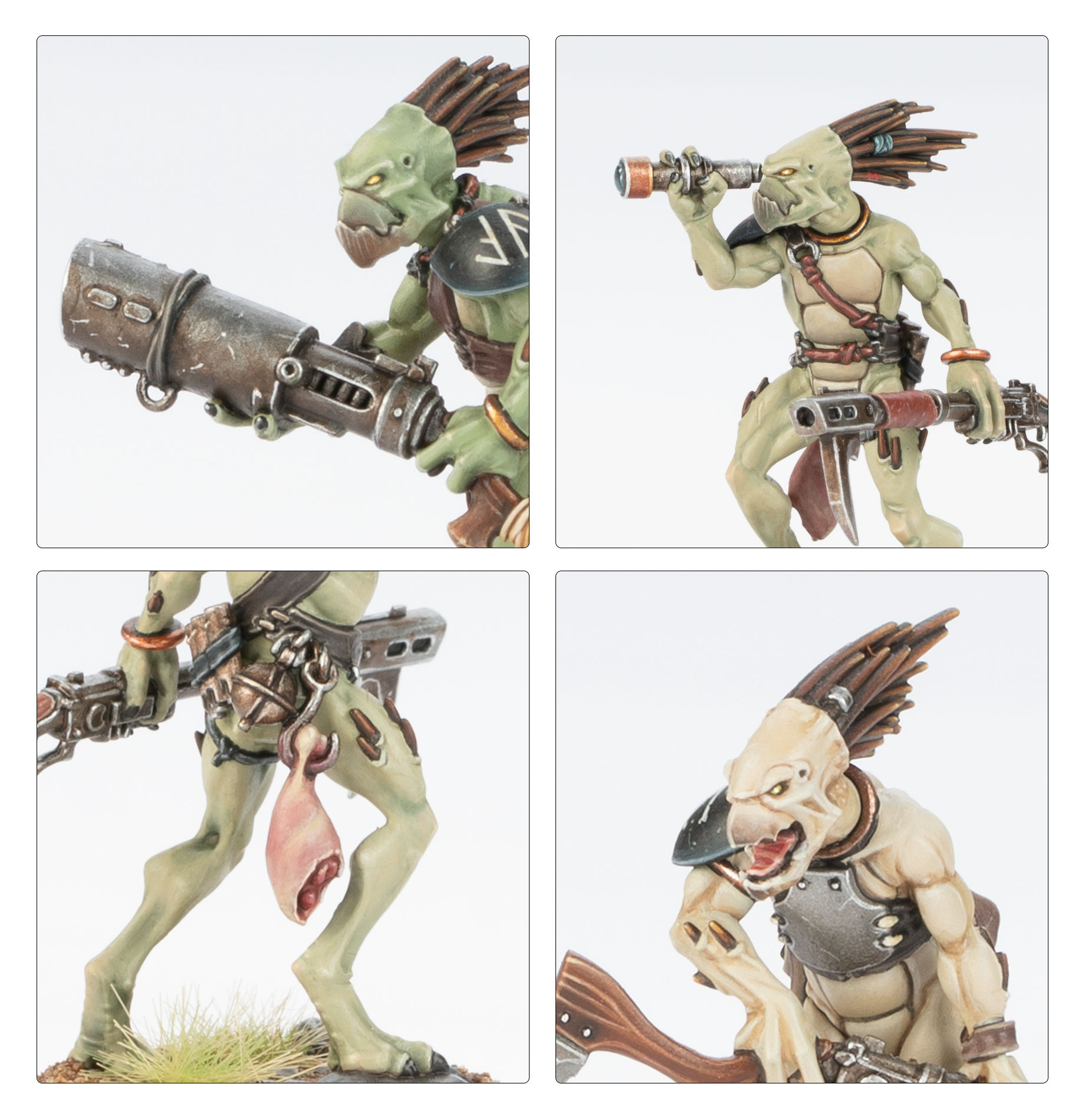 This multipart plastic kit builds 10 Kroot Carnivores, agile alien mercenaries employed by the T’au Empire. Each of these stealthy hunters is armed with a bladed Kroot