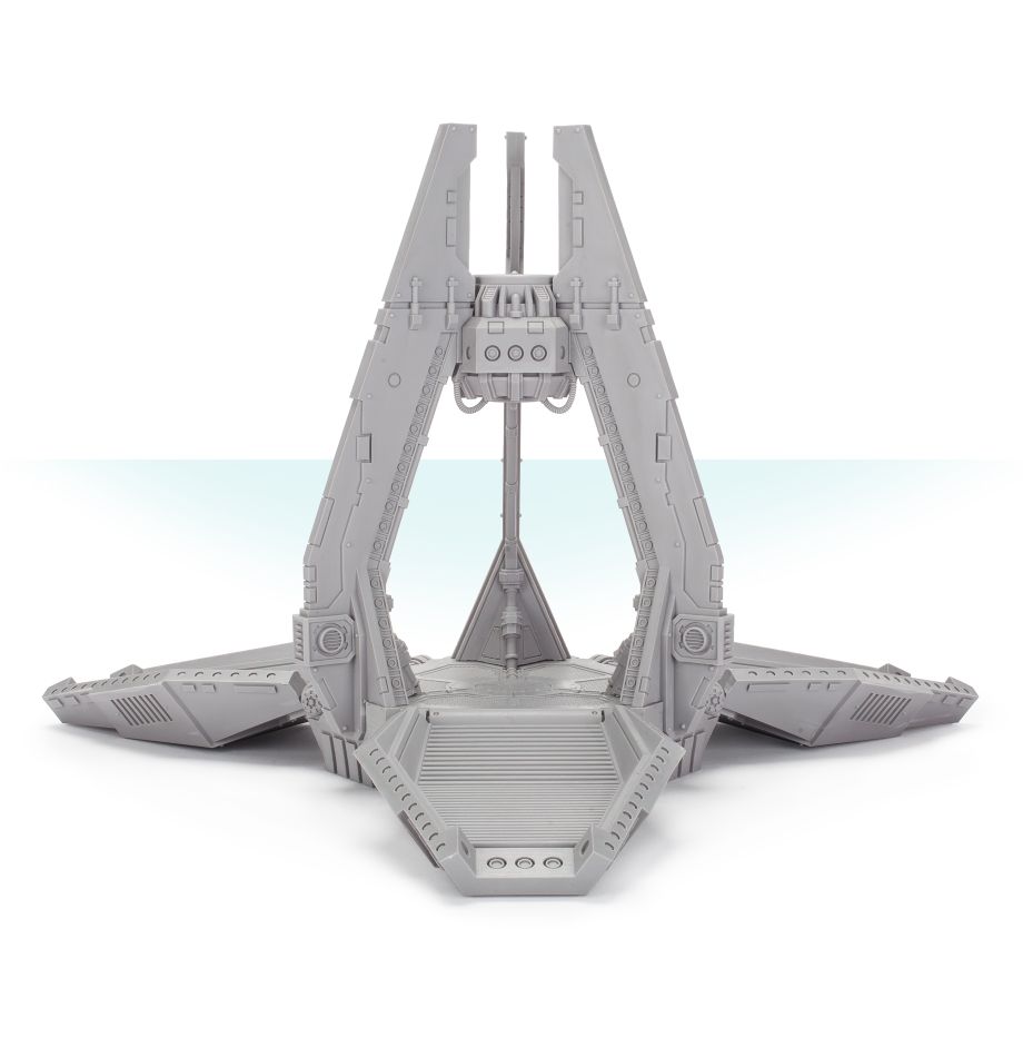Legion Dreadnought drop pods are larger than the general service drop pods employed by the infantry of the Legiones Astartes, with a sturdier frame and more powerful engine designed to support the formidable machine shell of a Dreadnought. As a result, these armoured capsules strike with unprecedented speed, making a dangerously meteoric descent from orbit to deliver their lethal cargo. Legions value these drop pods both for their ability to deploy Dreadnoughts safely onto the battlefield, and for the sheer impact of a mighty combat walker arriving from the skies.