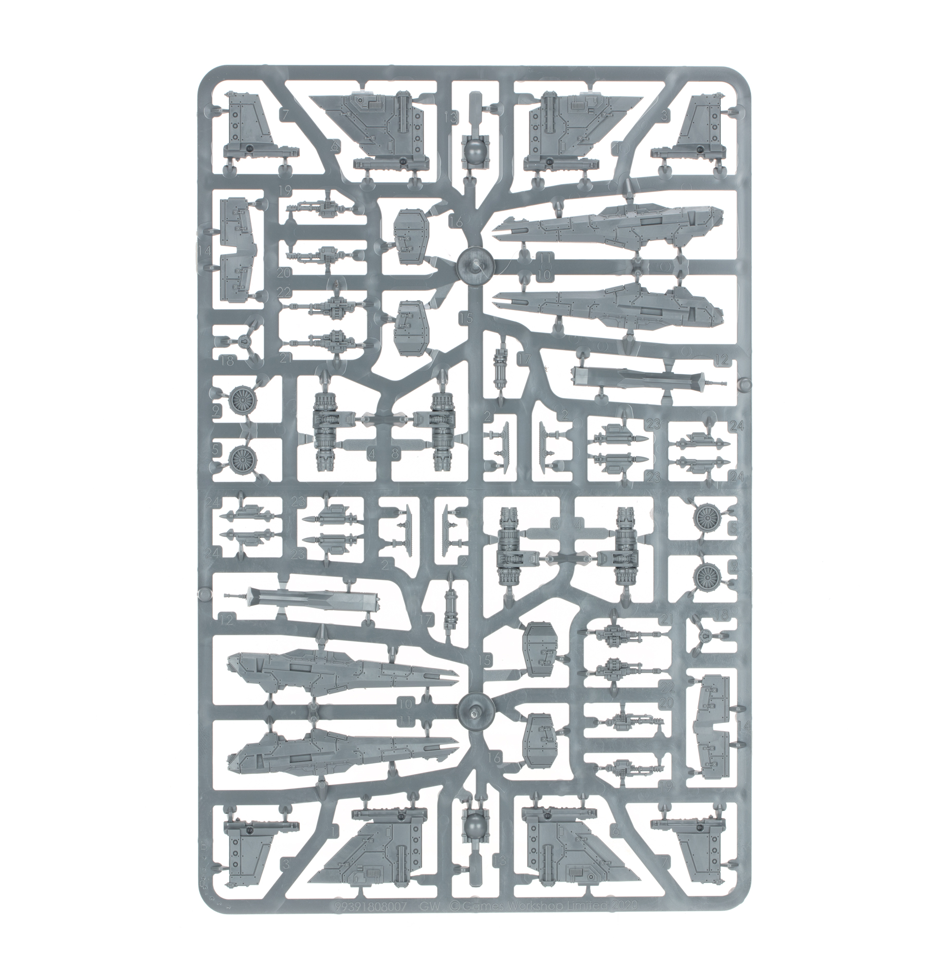 The Avenger Strike Fighter is a superlative ground attack aircraft designed to operate alongside Solar Auxilia cohorts during planetary invasions. Named for its primary armament, the Avenger bolt cannon, the Avenger excels at performing strafing runs on enemy armoured formations, raking the vulnerable weaker sides of their armoured hulls with mass-reactive bolt shells. The Avenger can also be employed in the secondary role of interceptor, providing close air support for ground troops against enemy bomber squadrons.
