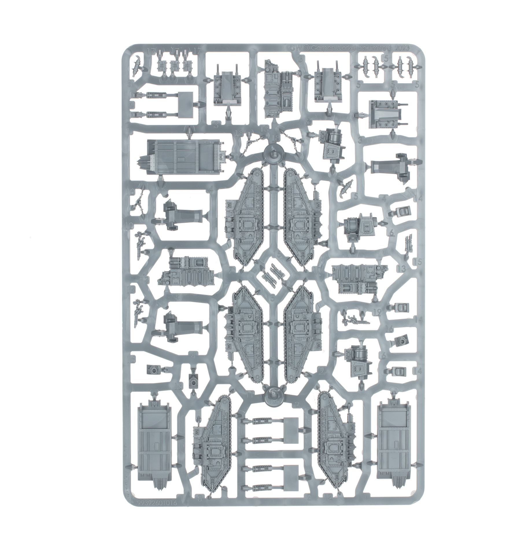 This multipart plastic kit builds six epic scale Solar Auxilia Dracosan Armoured Transports, heavy troop carriers for the battlefields of Legions Imperialis. Each Dracosan Armoured Transport can be equipped with a choice of a hull-mounted twin lascannon or a demolisher cannon. The hatch may also be built closed, or open with a crew