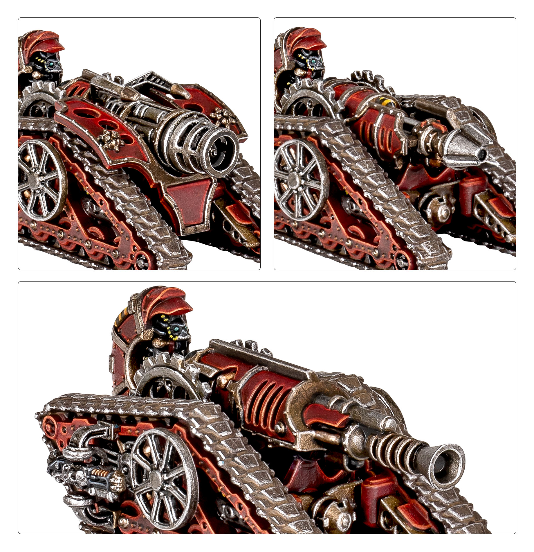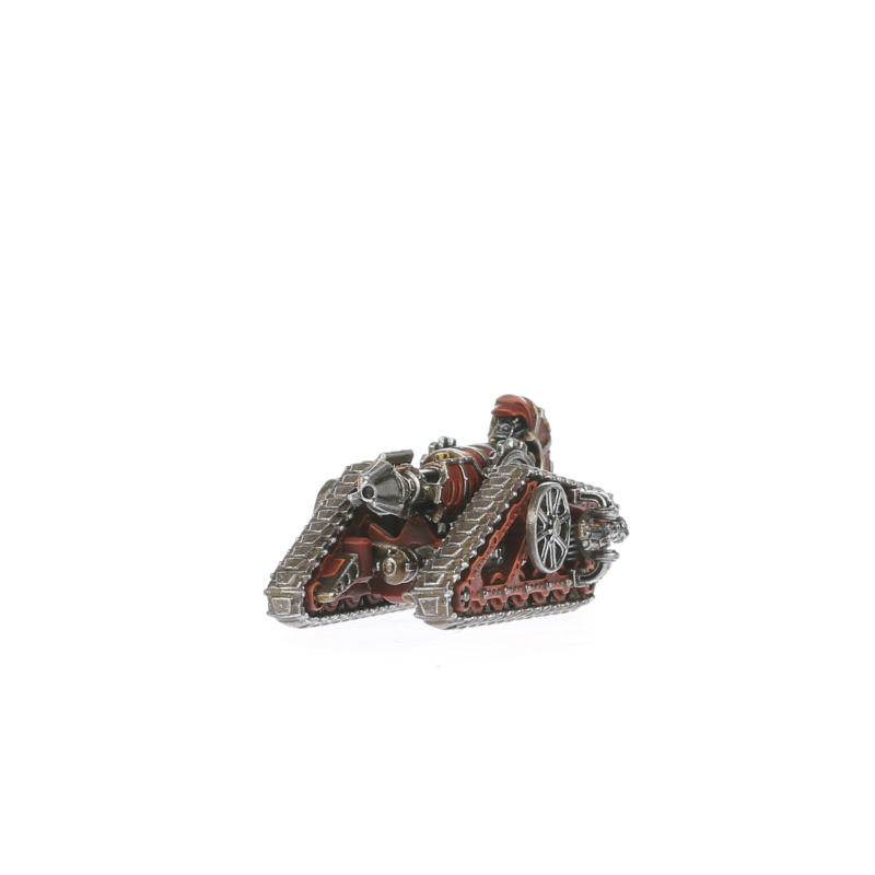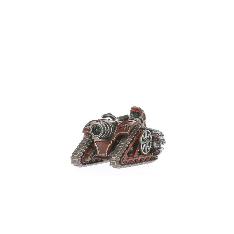 The Krios is the most commonly employed armoured unit of the Mechanicum, comparable in function and tactical role to the Predator tank widely used by the Legiones Astartes. Possessed of great speed and manoeuvrability, and mounted with numerous weapon patterns including a lightning cannon or irad-scourer, Krios squadrons are formidable armoured units that provide mobile firepower to Taghmata forces.