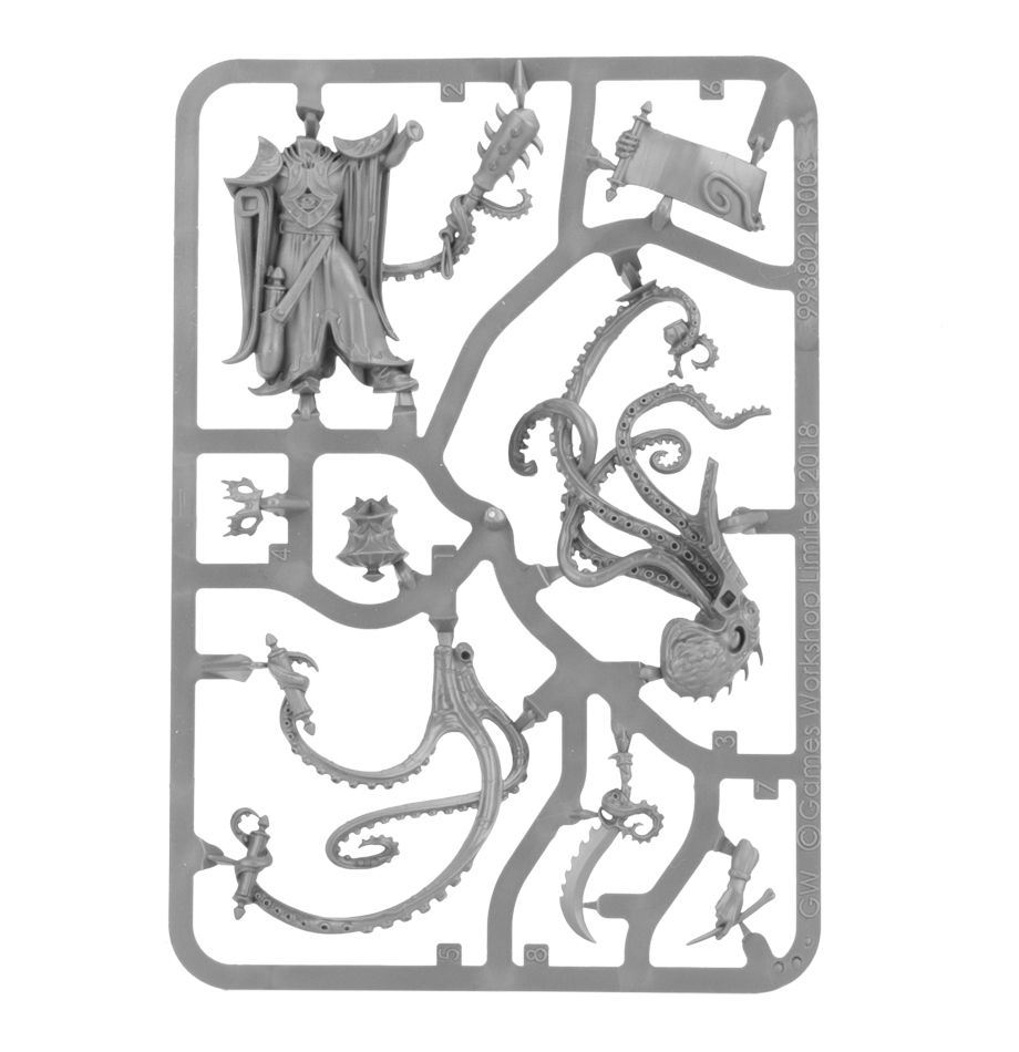 Gifted with the spirit-sight and keen analytical minds, the Soul Wardens keep a tally of interred souls, tending to them and calculating how many are needed for certain tasks. Ordinarily they do not accompany the phalanxes to war, but there is one exception – Lotann of the Ionrach. Such is Lotann’s obsessive commitment to his duty, his willpower stains the ethersea, a presence that inspires the Idoneth to fight with heightened zeal. His highly intelligent multi-limbed Ochtar familiar aids him in his task of scribing his catalogue of souls, by keeping aggressors at bay with a serrated blade
