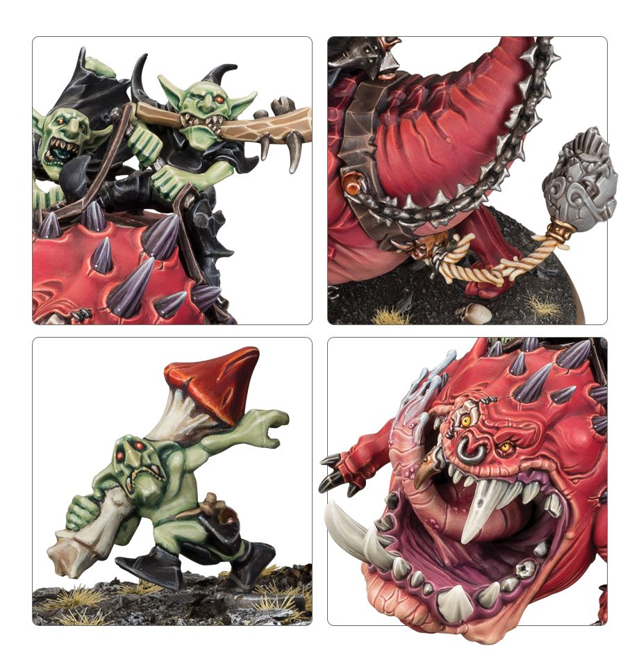 Mangler Squigs are possibly the most insane living weapons to be unleashed upon the Mortal Realms – a pair of overgrown cave squigs, chained together in a foul-tempered toothy tandem. Together they crash, bound and roll across the battlefield like living wrecking balls, leaving trails of torn and broken bodies in their wake.