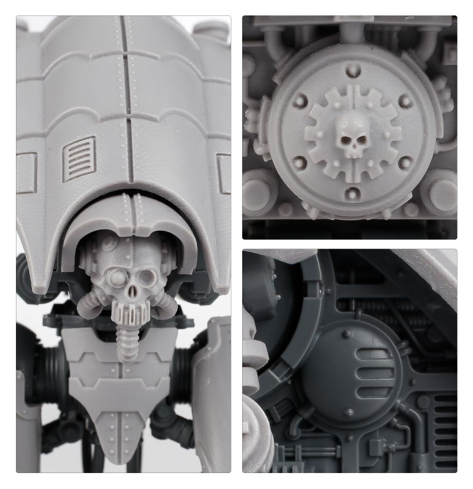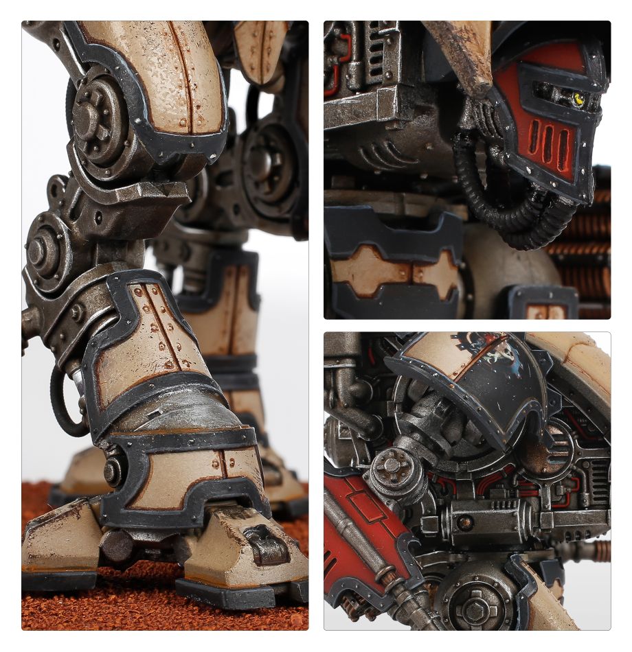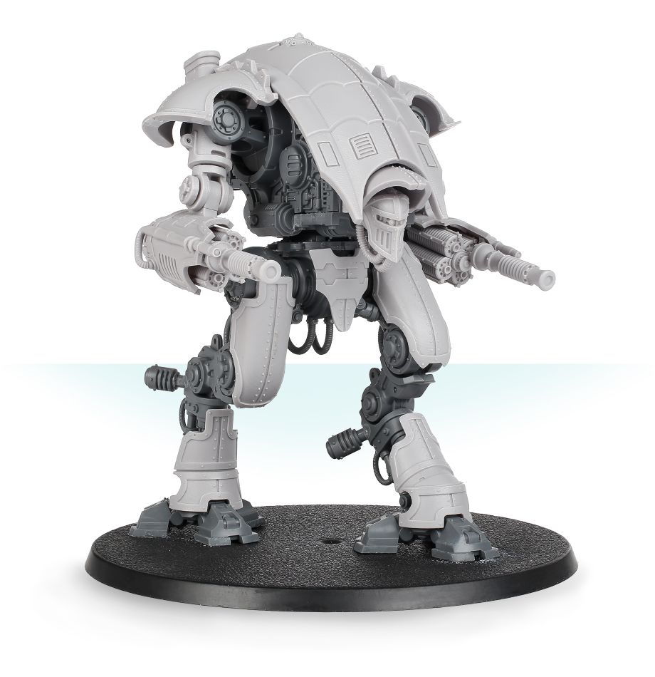 Considered an unseemly and dishonourable steed by most Knight Households, the Moirax is an Armiger-class variant equipped with the most lethal weaponry available to such scout Knights. The unstable rad furnace ticking away at the Knight’s heart suffers frequent leaks and overloads that turn its cockpit into a radioactive prison. Yet despite its dire reputation, the Moirax is undeniably effective in wars of eradication – able to fuel an array of powerful armaments, such as the lightning lock, a devastating weapon powered by potent capacitors of ancient design.