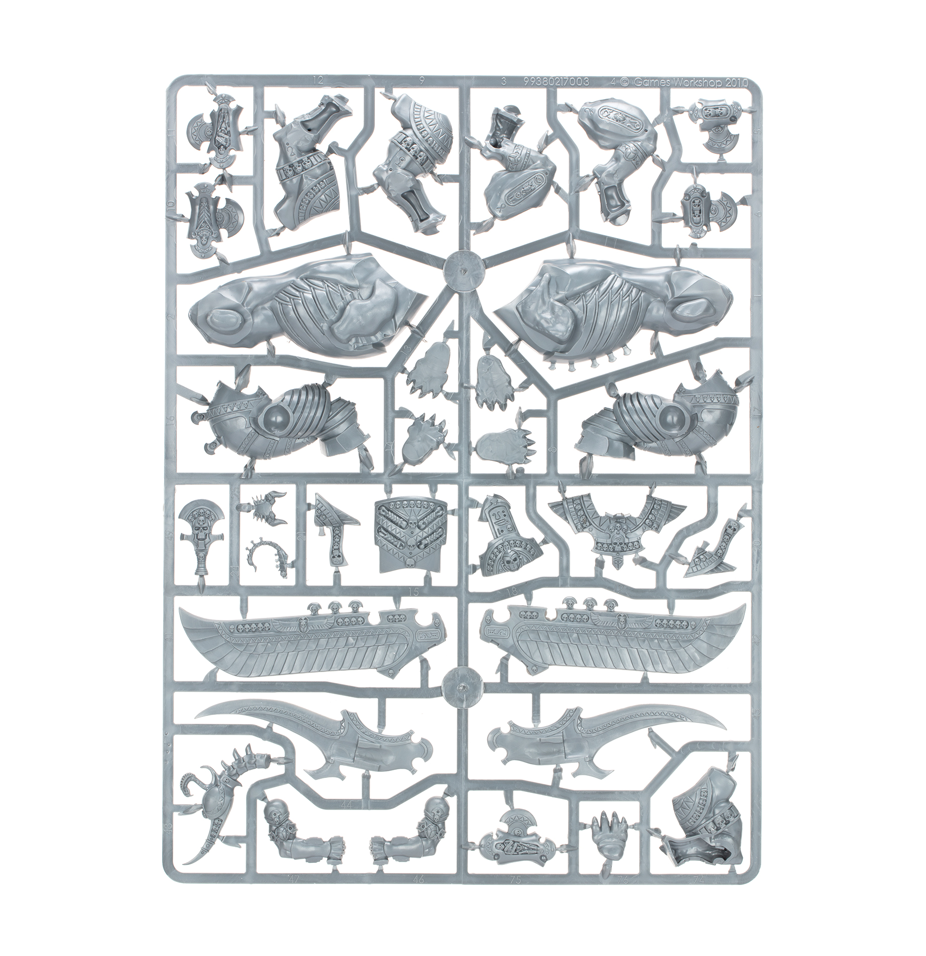 Necrosphinxes are terrifying war-constructs, patterned after the various mythical beasts that inhabit the Nehekharan underworld. A human torso and face extends from a colossal leonine body, combined with ornate, falcon-like wings and a deadly scorpion’s tail. Equipped with gigantic, scything blades that can sever a Dragon’s neck in a single slice, a Necrosphinx glides into battle with unnatural power, descending on its chosen prey and reaping souls like wheat.