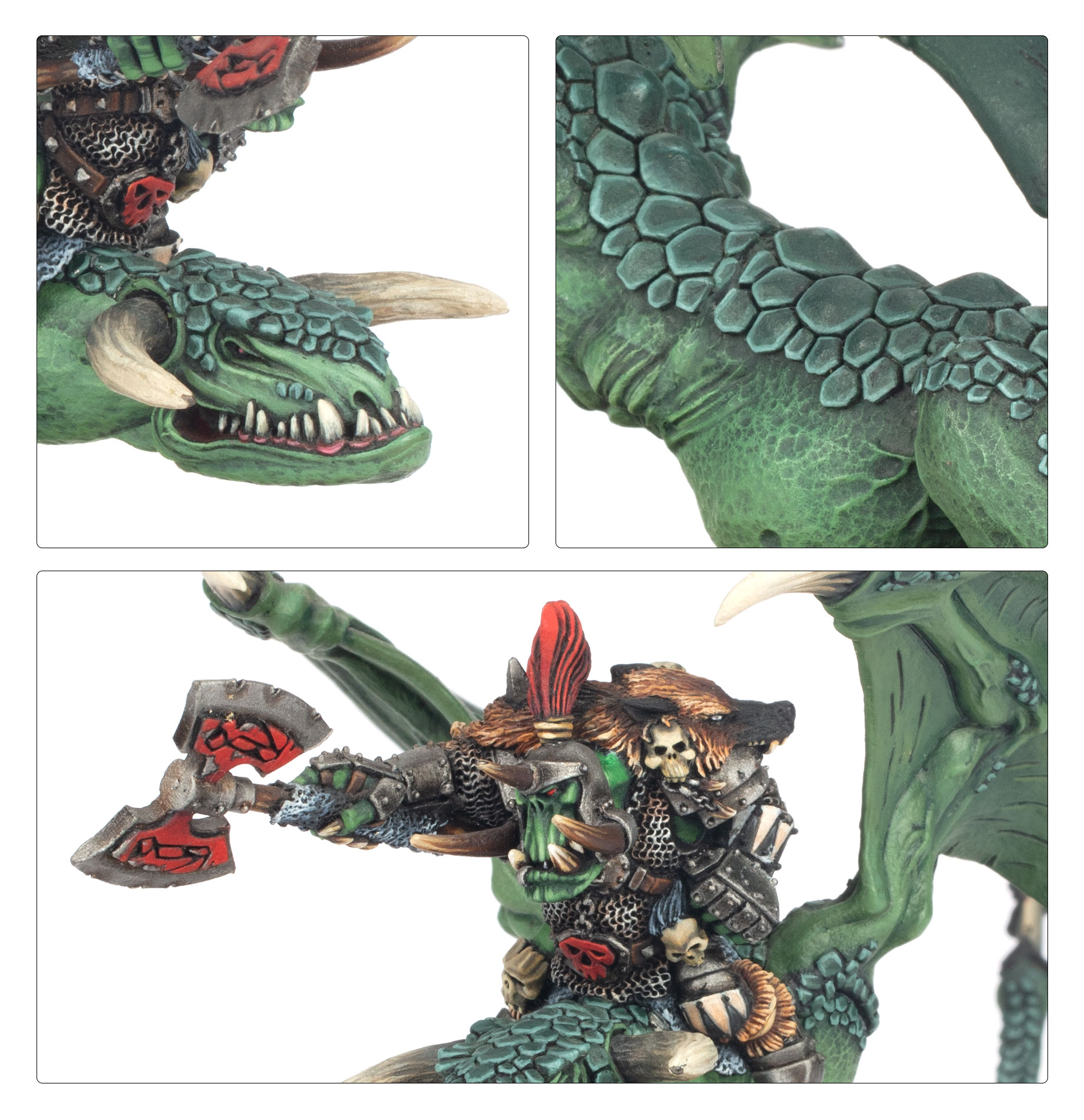 Wyverns are filthy, foul-smelling beasts with jagged and dirty teeth protruding from their heavy jaws, making a Wyvern the perfect mount for any Orc Warboss with enough brute force and ignorance to master one.