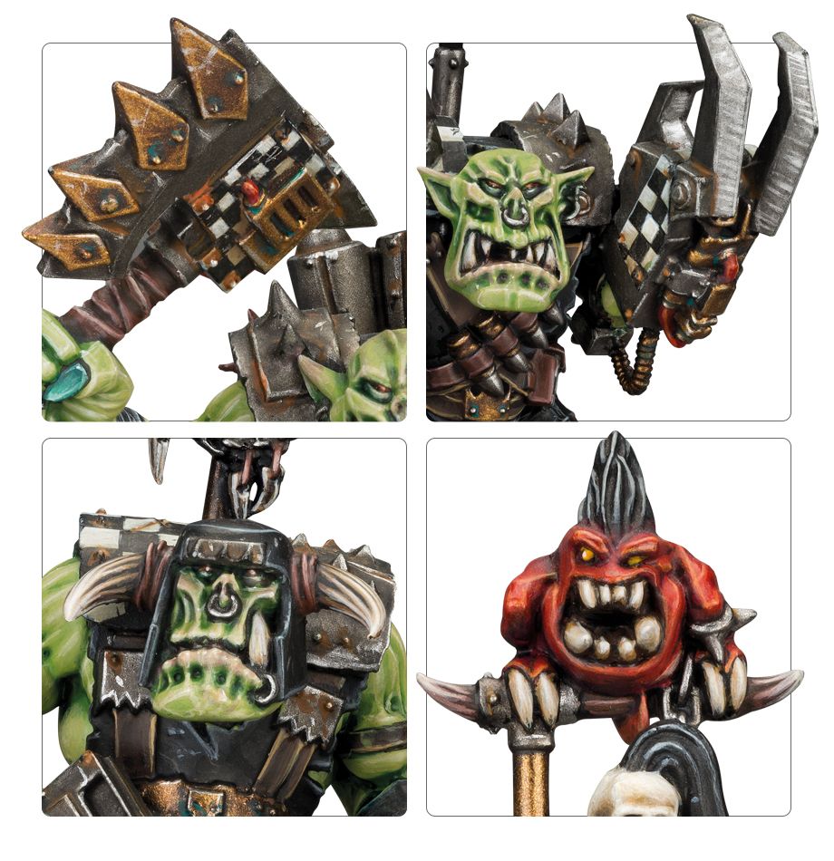 The Orks call their ruling caste Nobz. Nobz are bigger and scarier than other Orks and revel in cruel or casual violence. Nobz lead by example, plunging into the thick of the fighting and breaking skulls left, right and centre. In this way each Nob acts as a sergeant-at-arms, champion, oppressor and role model for the Boyz they lead.