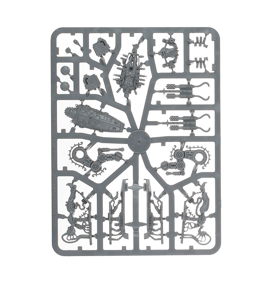 Piloted by sinners and heretics still able to seek redemption, Penitent Engines charge towards the foe heedless of danger, knowing that only through death can absolution be earned. The arms of the engine, mounted with enormous flamers, blaze a trail of fiery destruction as it thunders forwards. Upon reaching the enemy’s battle lines, the pilot is pumped with chemical and synaptic signals that induce unfathomable guilt, forcing them into a rampage that leaves nothing but death and carnage in