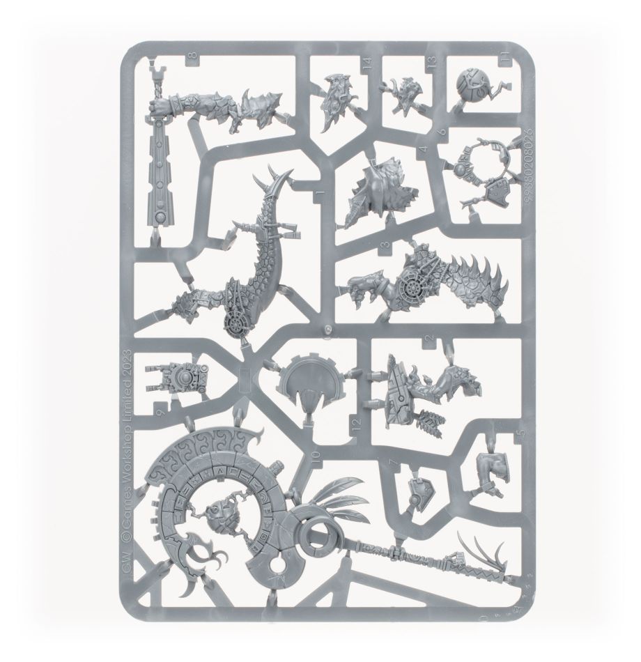This multipart plastic kit builds a Saurus Astrolith Bearer – a Seraphon champion entrusted with a reality-shaping totem. The Astrolith Bearer is clad in ancient ceremonial armour