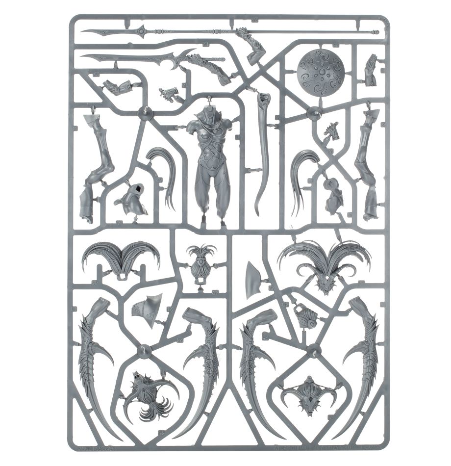 This multipart plastic kit builds Shalaxi Helbane for your Emperor’s Children or Chaos Daemon armies in games of Warhammer 40,000, or your Hedonites of Slaanesh armies in games of Warhammer Age of Sigmar. This lavish centrepiece miniature is a monster hunter beyond compare – as a champion of the Dark