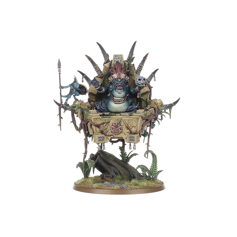 This multipart plastic kit builds a Slann Starmaster – a toad-like mage-priest seated atop a floating palanquin. The Starmaster visibly exudes ancient wisdom and magical
