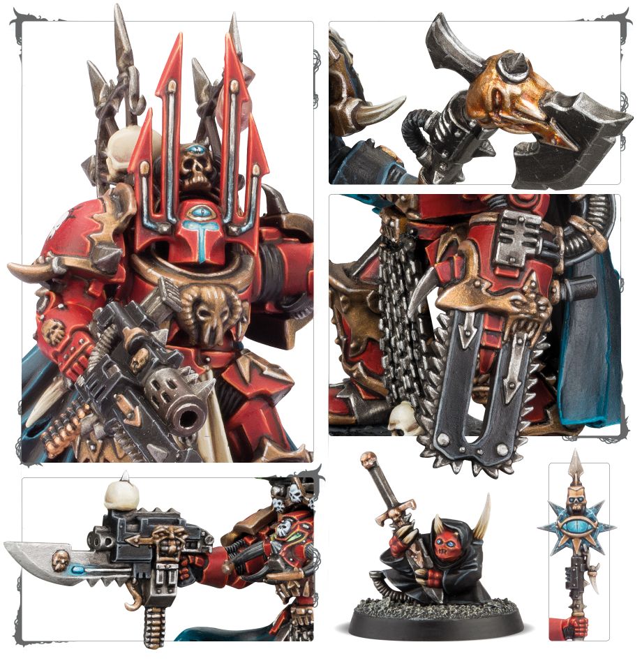 The powers of a warband’s Sorcerers lend a sickening occult advantage to elite infantry spearheads. Girded in warsuits of sigil-etched Terminator armour, they are able to support gruelling boarding actions, assault through daemon-haunted labyrinths, or fight on the front line against swarming, ignorant Loyalists.