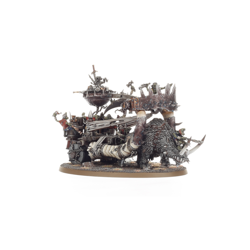 Scrapglutts trawl the deserted battlefields and rusty junkyards of the lands, driven by an ogor hunter’s obsession with fashioning mantraps. Any piece of useful wreckage is gathered by eager gnoblars and repurposed as armour and weapons for the warband.