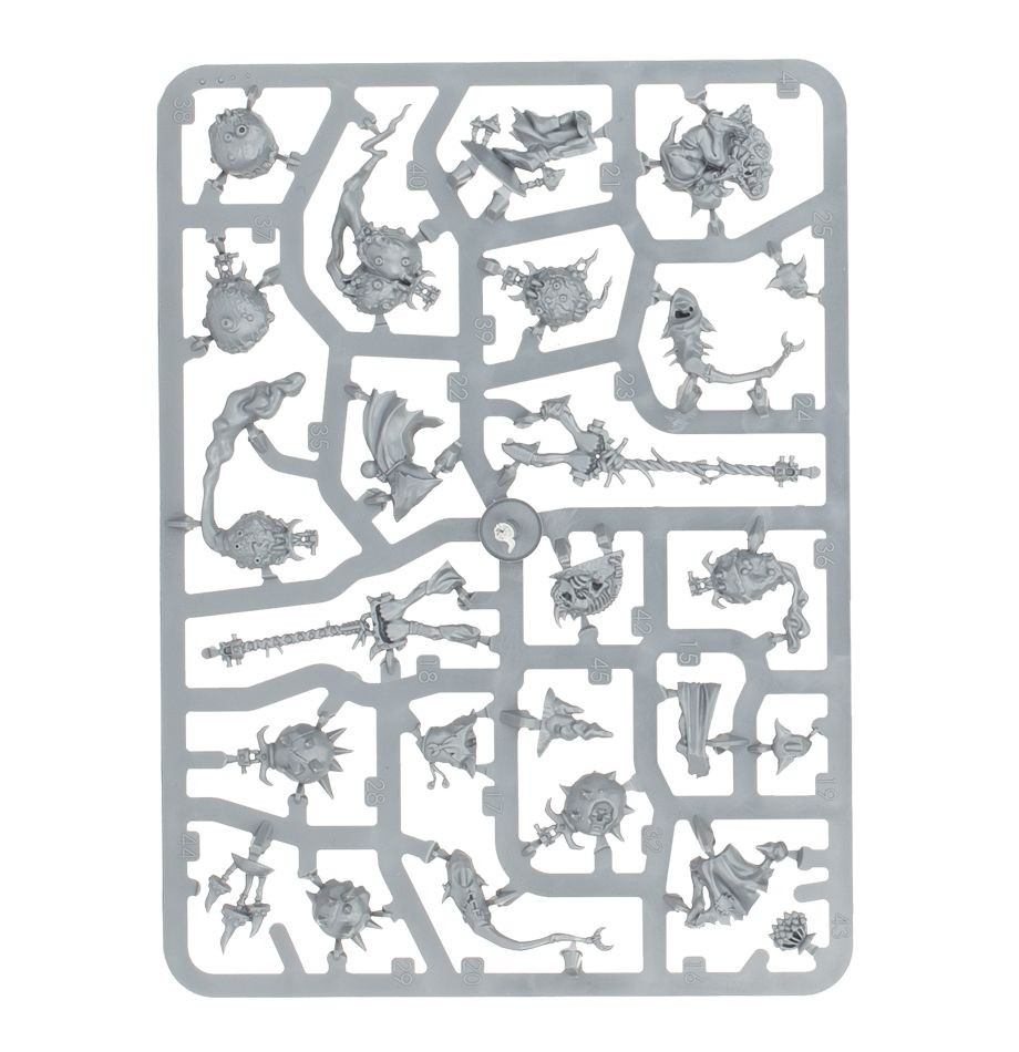 This multipart plastic kit builds five Sporesplatta Fanatics, insane Moonclan grots armed with giant mushroom flails. These lurching, fungus-drunk gitz are dragged around the battlefield by the sheer weight of their own weapons – each grot comes with a choice of hooded and bare