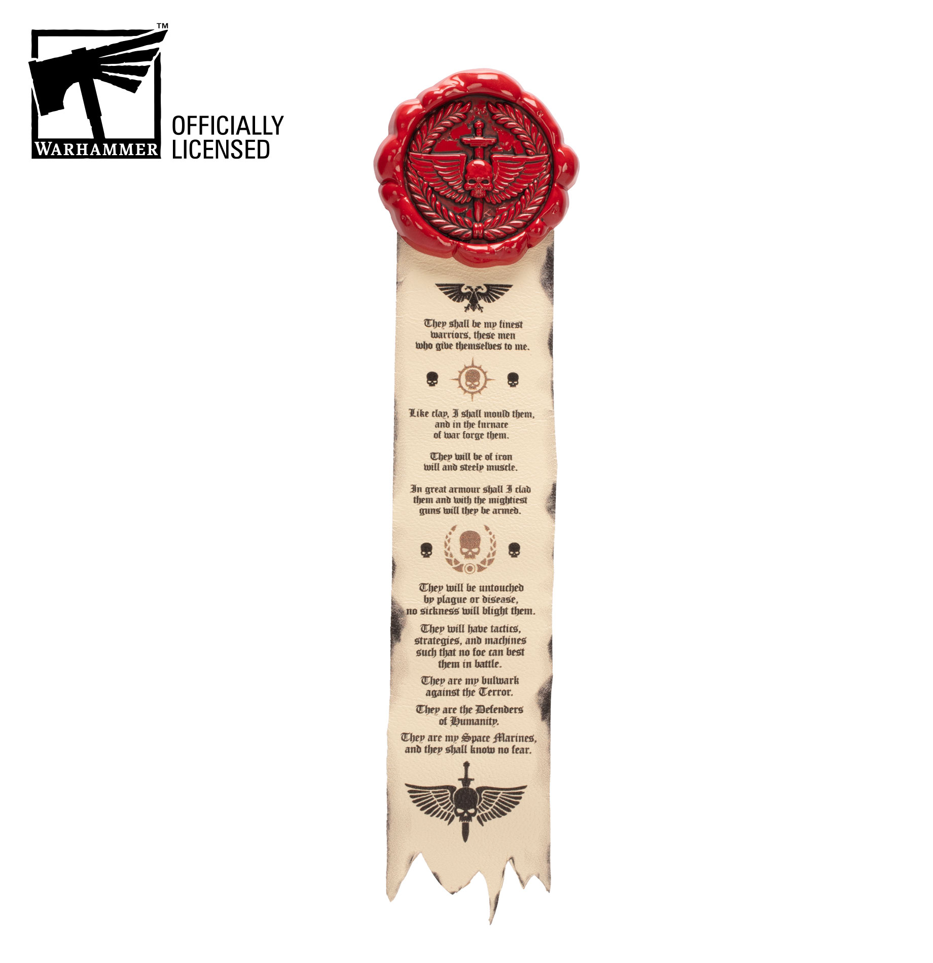 Now you can display your loyalty with a stunning purity seal badge. The seal itself is rendered in durable metal, roughly 42mm in diameter, and presented in a lustrous red to mimic the appearance of wax. A stoic icon of the