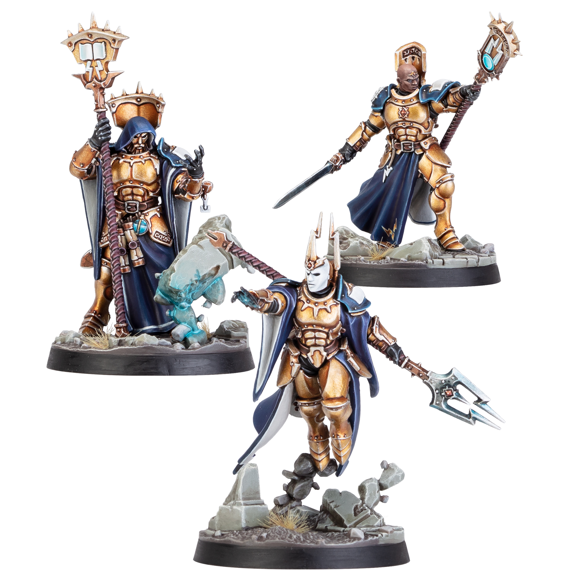 This multipart plastic kit builds a Stormcoven of three celestial Knight-Arcanums – a unit of Wizards for Stormcast Eternals armies in Warhammer Age of Sigmar. Call forth the power of Azyr and devastate enemy lines with this coven of magic-wielders.