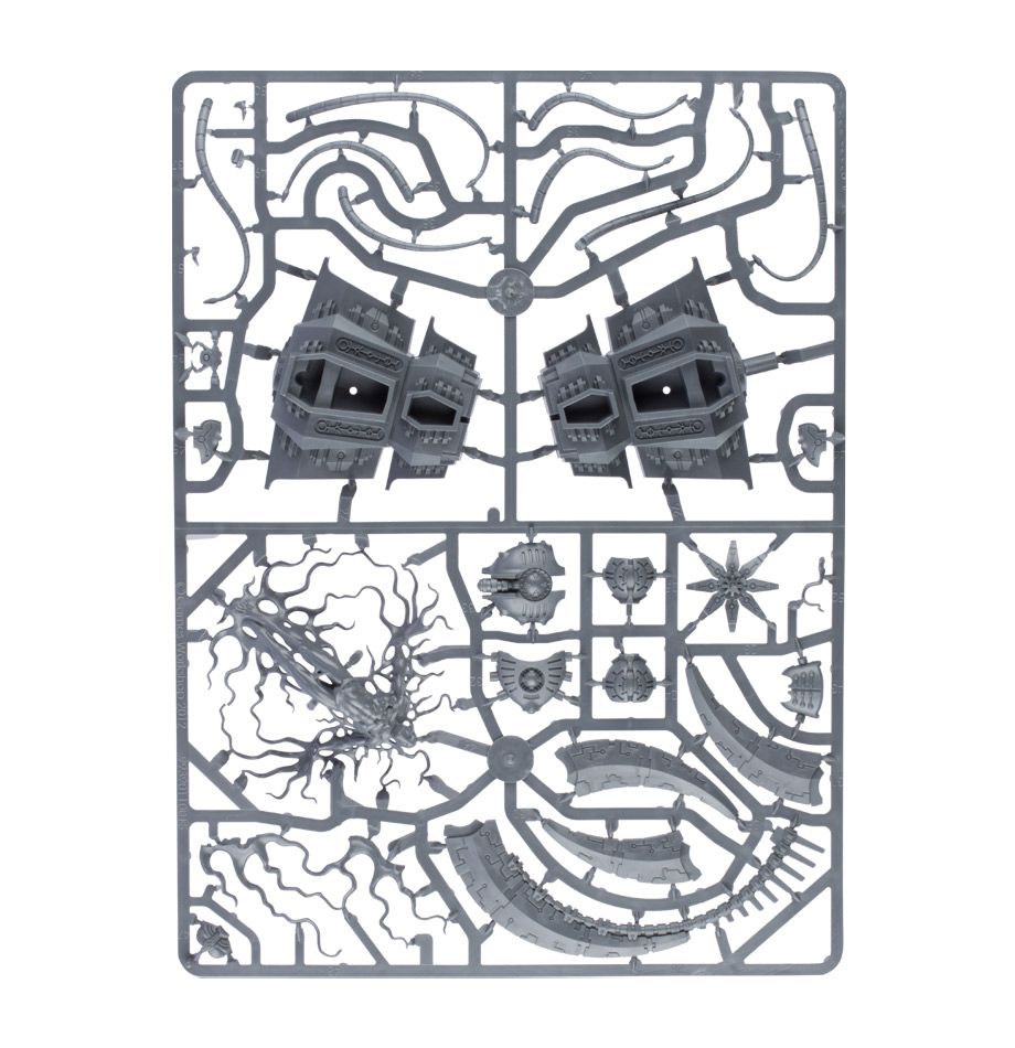 The Necron Tesseract Vault holds an imprisoned Transcendent C’tan, turning his powers into phenomenal weapons of mass destruction that can age its foes to dust, set acres ablaze, or trigger seismic shifts in the planetary crusts with a single gesture.