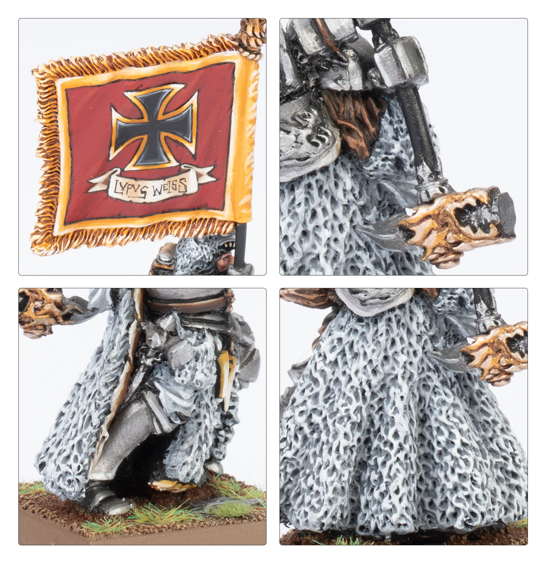 The Teutogen Guard are the personal bodyguard of Ar-Ulric in their role as high priest of the Cult of Ulric. Being selected to join the Teutogen Guard is one of the highest accolades a Knight of the White Wolf can receive, and the honour is even greater for those who become unit champions, musicians, or standard bearers.