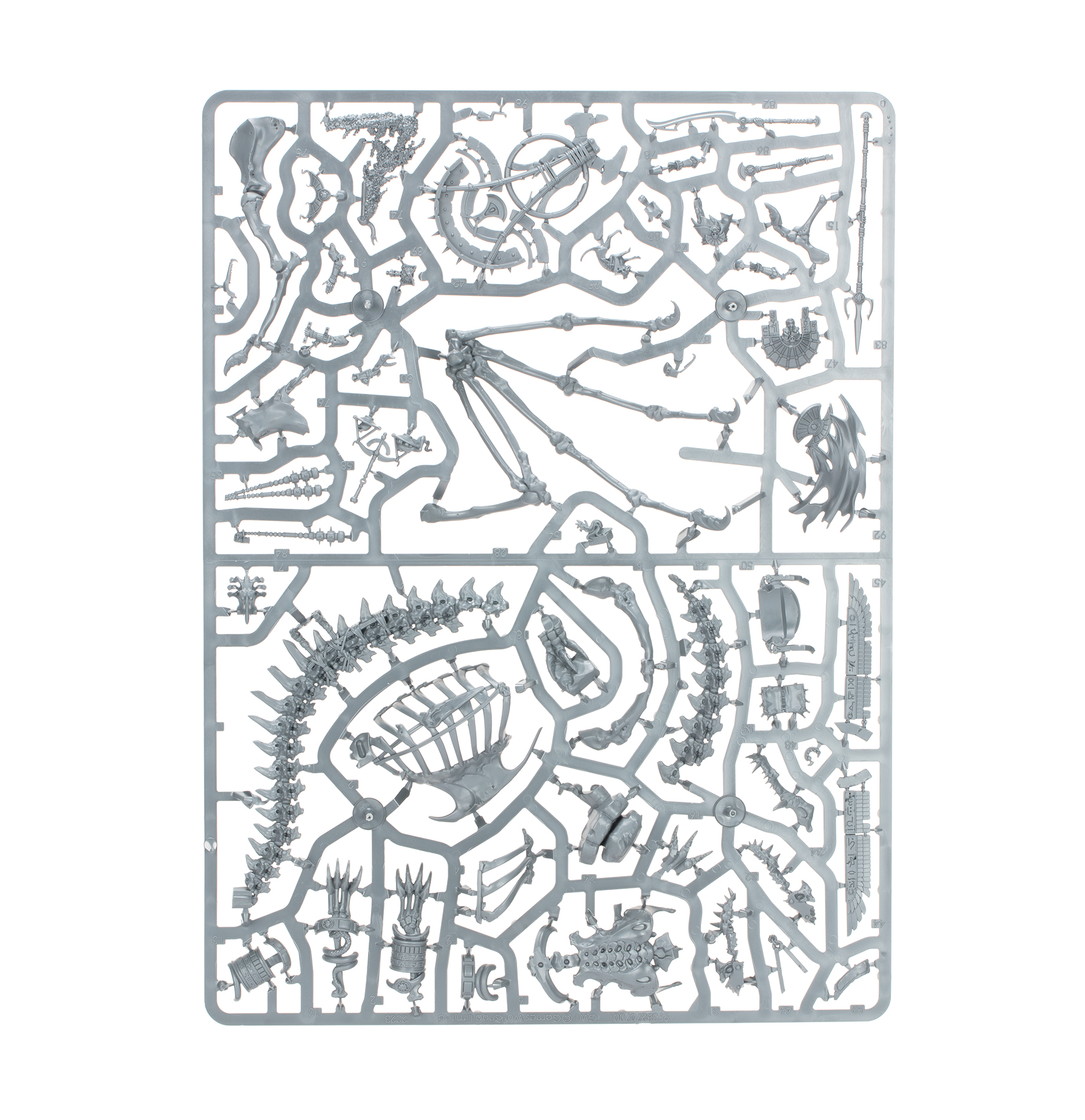 Tomb Kings are the ancient, long-dead rulers of Nehekhara, reborn through the archaic rituals of their Liche Priests. Only the most prestigious rulers can harness the undying will of a fearsome Necrolith Bone Dragon, much less ride such a behemoth into battle. These reanimated wyrms descend upon the living, given unnatural flight by skeletal wings, before lashing out with wicked claws and jagged fangs. Those who survive must contend with clouds of seething dust and desiccating smog, for a dragon’s breath is lethal even in death.