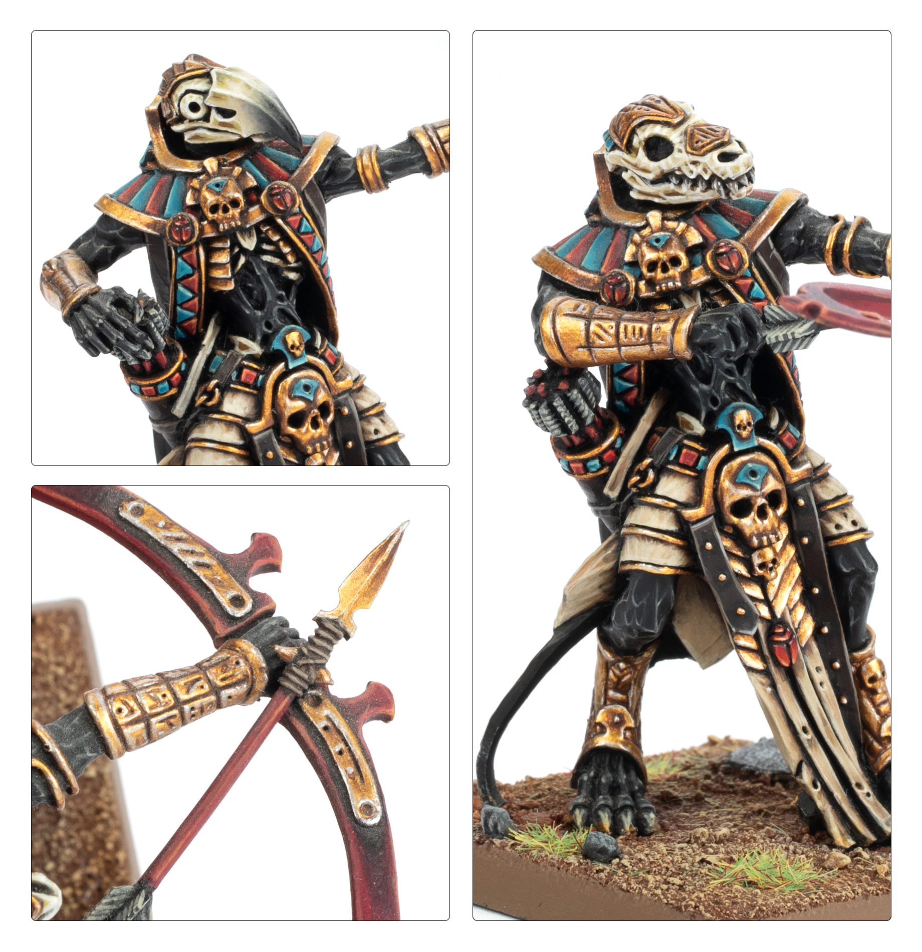 This multipart metal kit builds three Ushabti for use in your Tomb Kings of Khemri army. Each one is crafted in the image of a God or Goddess of Nehekhara and towers over regular infantry. They are armed with deadly greatbows, powerful ranged weaponry