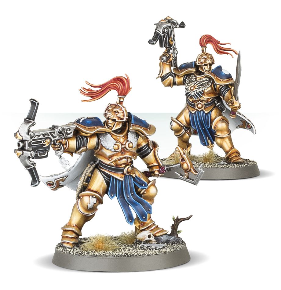 Bold raiders and expert scouts, the Vanguard-Hunters are the elite infantry of the Vanguard Auxiliary Chambers. Battle-hardened veterans, they are experts at using the terrain to their advantage. Their daring guerilla raids necessitate constant movement – more than once has a thought-unassailable position been scaled and destroyed by a band of Vanguard-Hunters who have made themselves invisible during the madness of battle. Their weapons suit their role – heavy-bladed swords and short-hafted axes cut through brush, briar and flesh, and boltstorm pistols are easy to fire on the move.