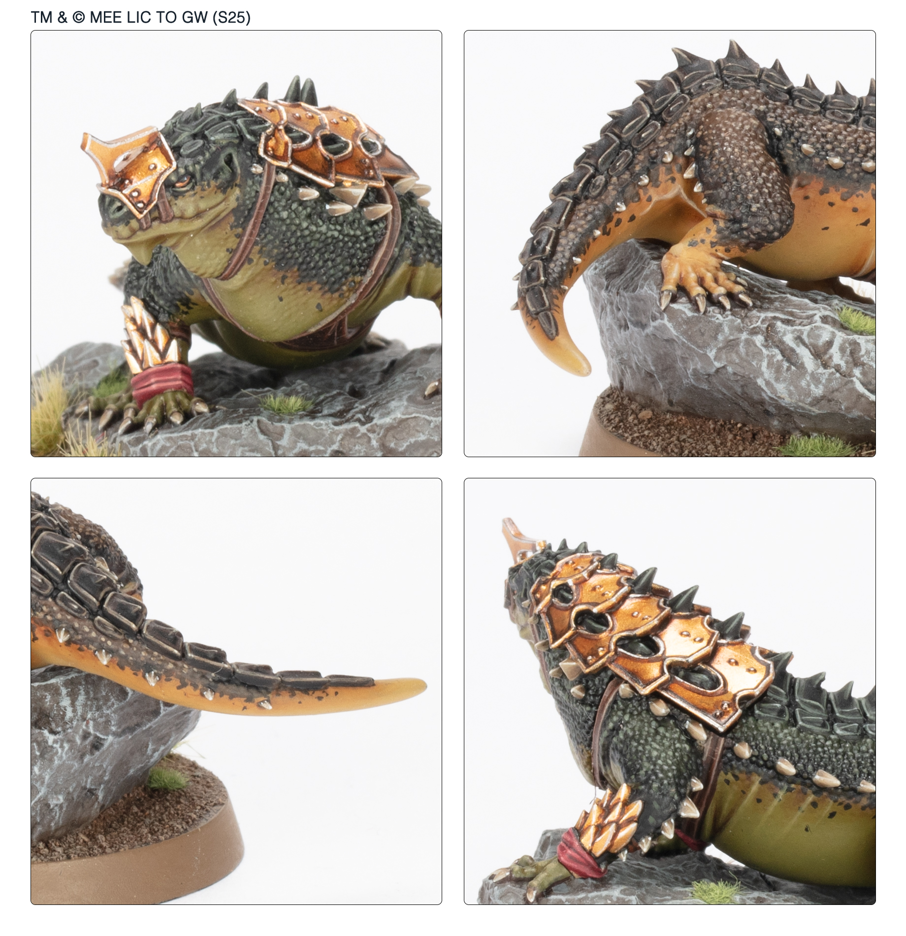War Drakes of Rhûn are a rare sight, even in the eastern lands of Middle-earth. These territorial reptilian creatures harbour a vicious nature – their powerful jaws can snap a man’s arm in two and the venom they inject leaves their prey weakened and helpless. Often an Easterling army will contain some of these beasts when they go to war – not only are they dangerous creatures but they are also the pride of the Dragon Cult.