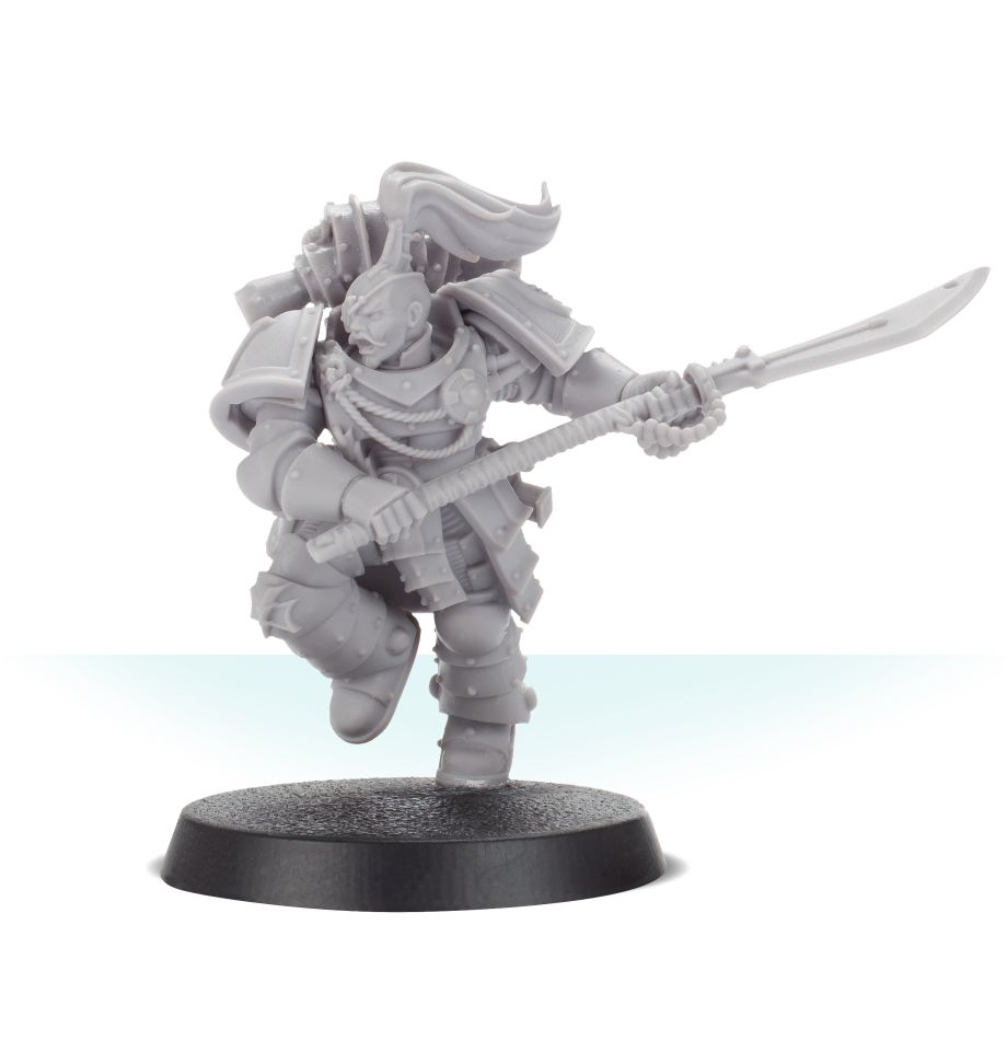 This multipart resin kit builds one Legion Praetor, a finely-detailed commander for the White Scars Legion. Armed with a deadly Chogorian